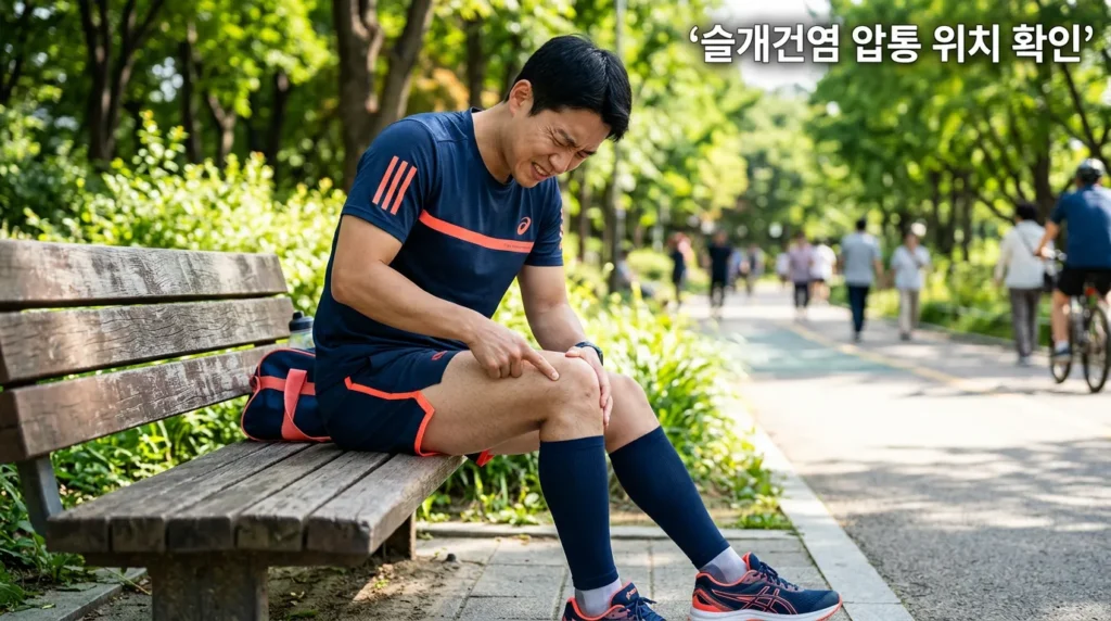 📌 핵심: 무릎 아래 힘줄 압통 + 점프 후 통증 = 슬개건염 의심