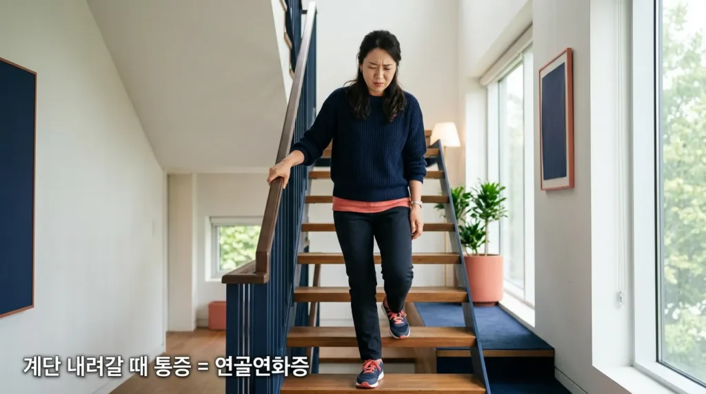 ✅ 계단·쪼그려 앉기에서 통증이 심해지면 연골연화증 가능성이 높아요.