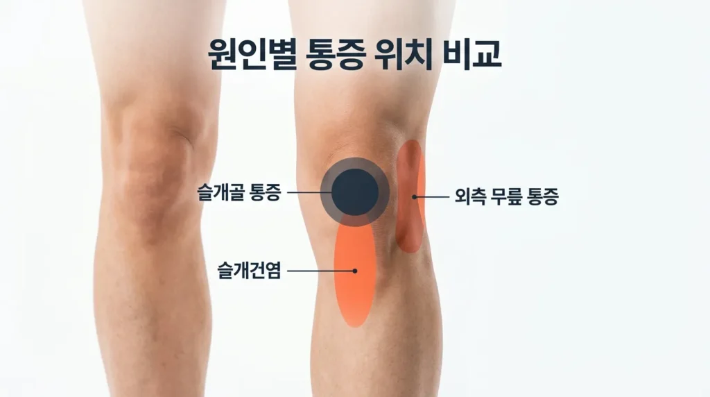 무릎 앞쪽 통증은 원인이 5가지로 나뉘는데, 원인마다 관리법이 완전히 달라요.